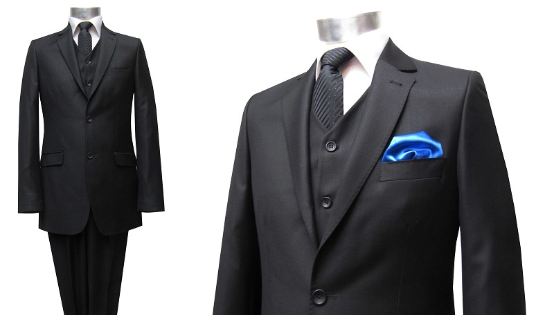Herren Anzug 3 teilig Schwarz Regular