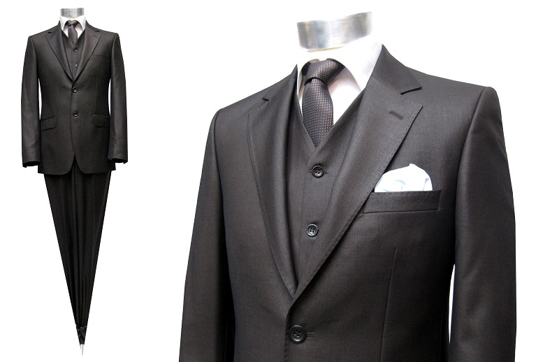 Herren Anzug mit Weste Dunkelbraun